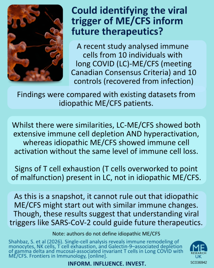 A recent study reinforces this need, suggesting that individuals with ME/CFS following SARS-CoV-2 infection (i.e. those with long COVID meeting ME/CFS diagnostic criteria) exhibit different immunological signatures compared to those with “idiopathic” ME/CFS.