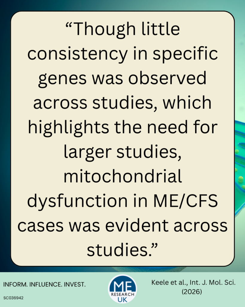 Surprisingly, the study findings also indicated that there was little consistency in specific genes in people with ME/CFS across studies, something the researchers say, ‘highlights the need for larger studies.’