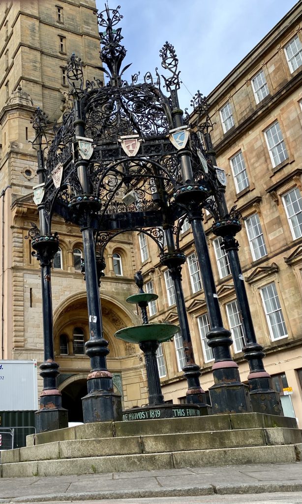 In addition, the historic Lyle Fountain was likewise illuminated. The fountain, standing in Clyde Square near to the Municipal Buildings was gifted to the Corporation of Greenock in 1880 by Abram Lyle, the founder of the Lyle sugar refinery which would later merge with Henry Tate’s refinery to form Tate & Lyle.