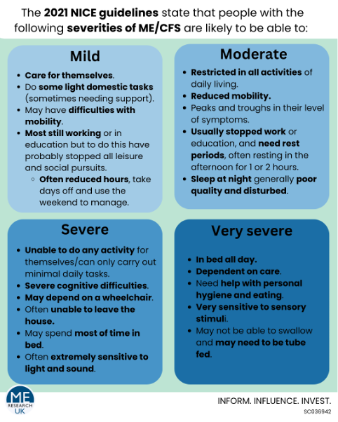 ME/CFS can a have a major impact on a person’s ability to carry out normal activities, including everyday tasks, keeping a job, going to school, and taking part in family and social life.