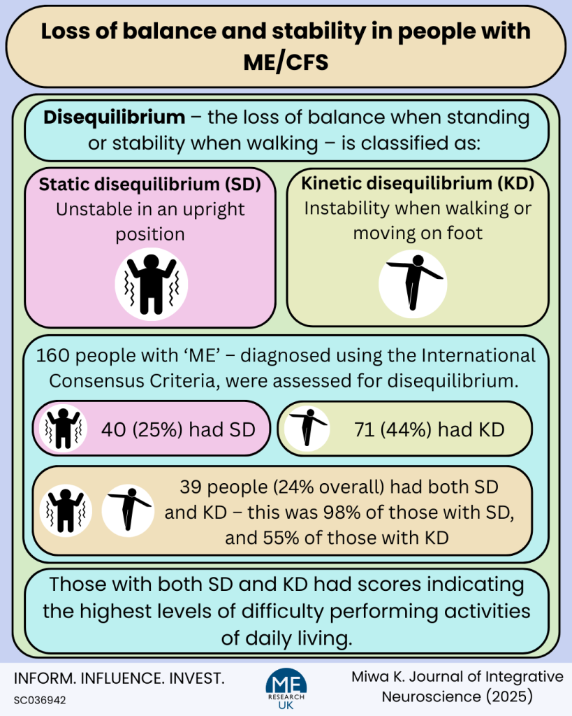 Research has suggested that people with ME/CFS may have postural instability or ‘disequilibrium’ – loss of balance when standing or stability when walking.