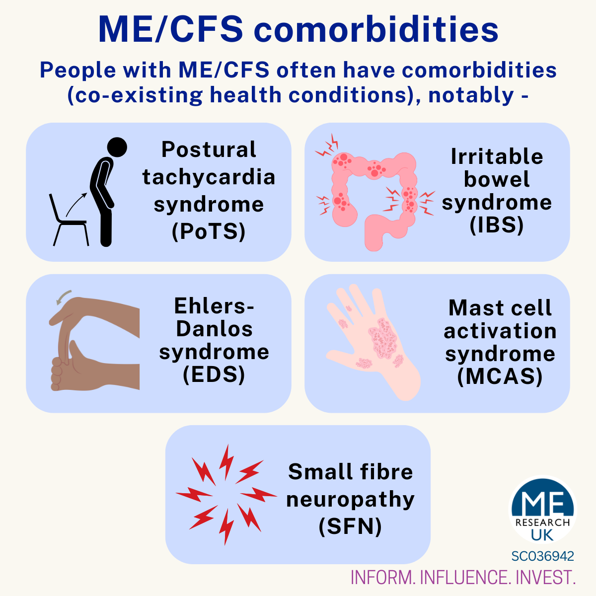ME/CFS is a complex and debilitating disease which extends far beyond fatigue. It encompasses a wide range of symptoms, such as: cognitive dysfunction, sleep disturbances, gastrointestinal issues and sensory hypersensitivity.