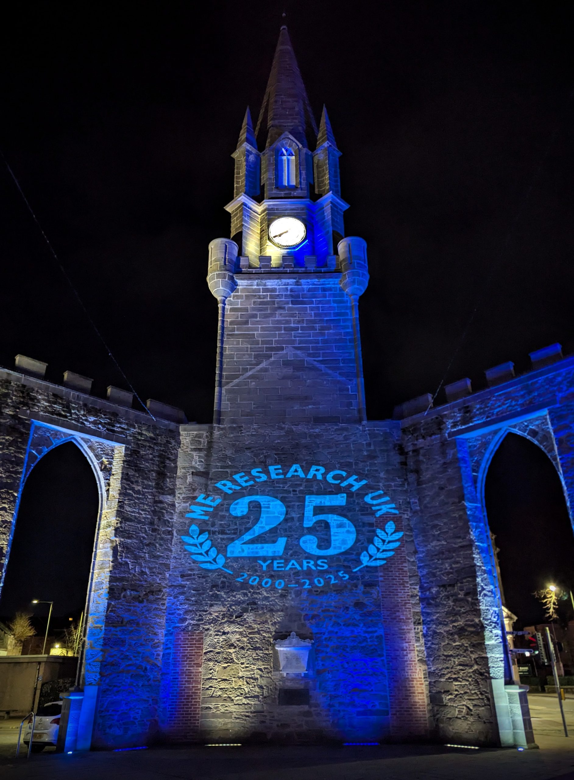 At the behest of ME Research UK, the four home nations united to mark International ME Awareness Day 2025 with the Northern Ireland Assembly’s Parliament Buildings, Belfast City Hall, BT Tower, London, Gateshead Millennium Bridge, Cardiff Castle, Edinburgh, and Aberdeen Council’s HQ illuminated in blue in honour of those affected by ME and to raise awareness of the disease.