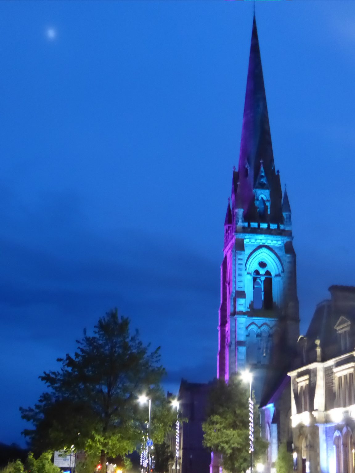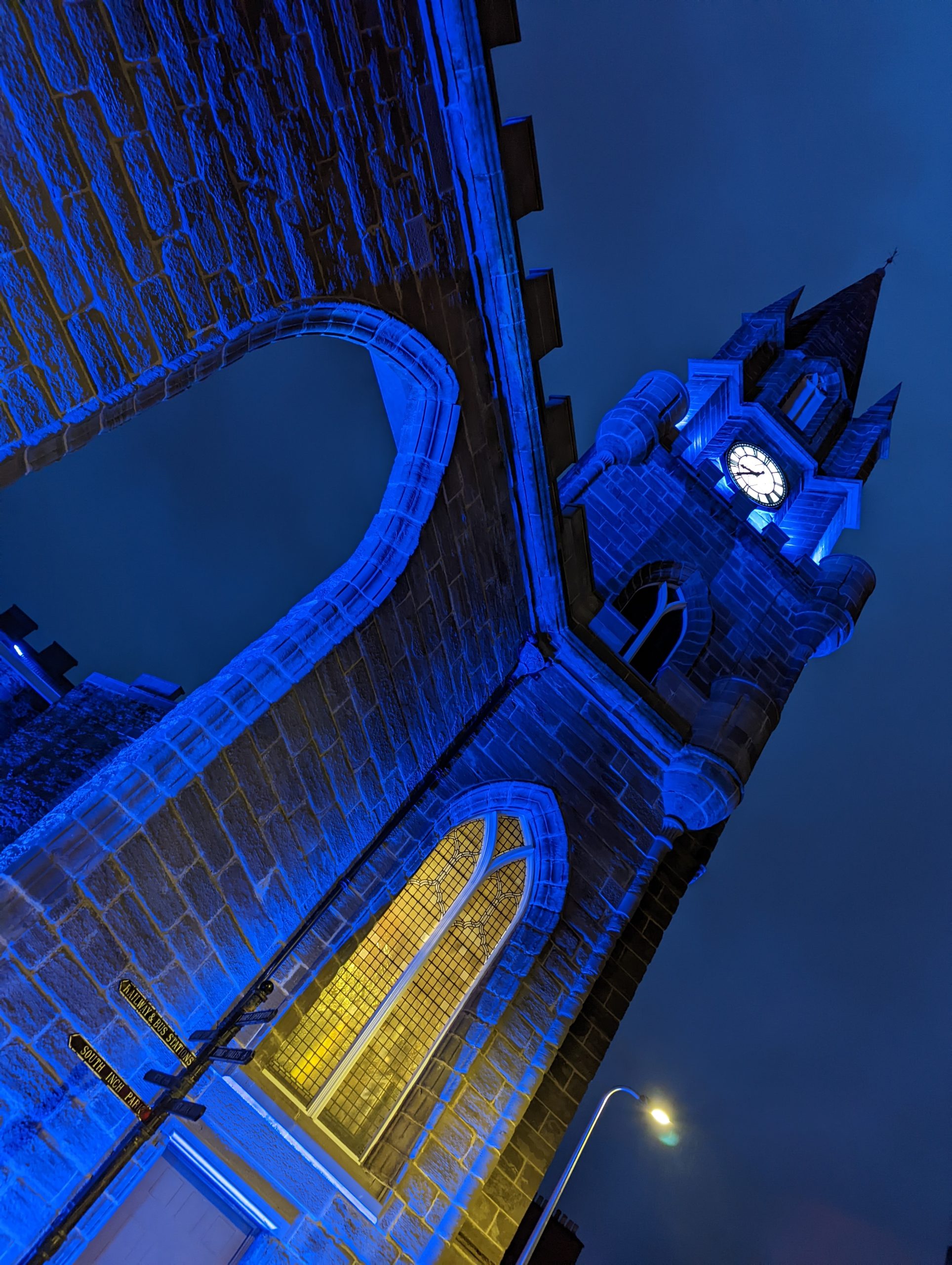 It has been a feature on 12th May for notable landmarks to be illuminated in blue (the colour designated for ME) in solidarity with all those affected by the disease which affectes many hundreds of thousands of people in the UK. In 2022 Perth was bathed in blue for the night, 2023 was marked in a similar fashion by landmarks in Glasgow, and last year Inverclyde answered ME Research UK’s call.